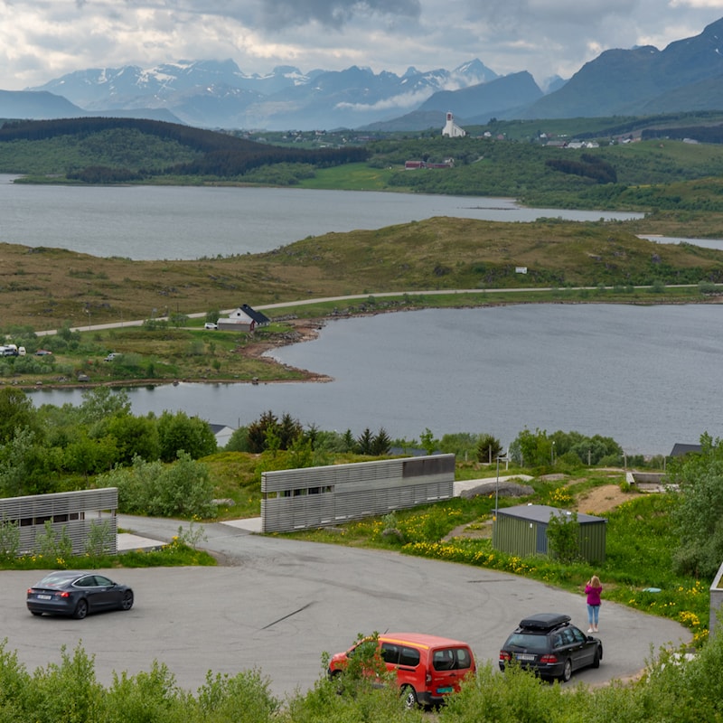 Auf einem Höhenzug südlich des Torvdalsvatnet liegt der Rastplatz Torvdalshalsen mit der besten Aussicht von der Insel Vestvågøya.